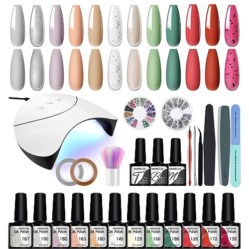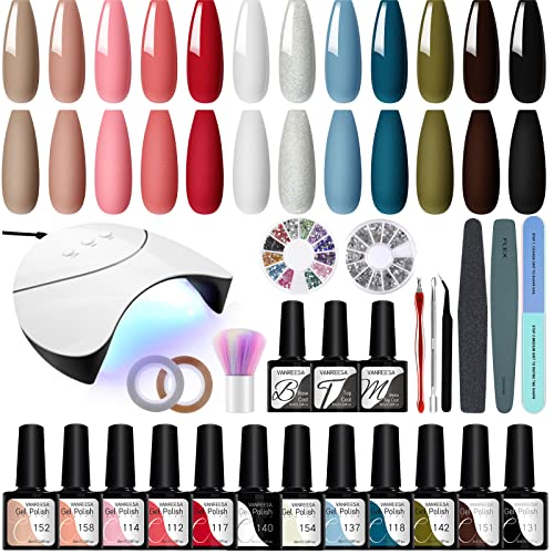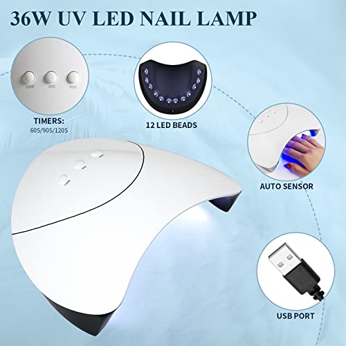- DIY at Home: Full upgraded gel nail polish kit includes 12 colours gel polish, 36W U V LED USB nail lamp, manicure tools, nail art decorations, that all of the DIY parts you need and suit for starters. You can enjoy your manicure with friends and families at home and save money and time at salon.