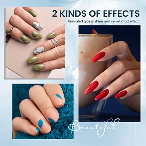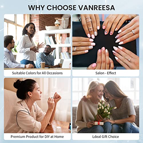 - 2 Kinds of Effects: 12 colours gel polish but 24 effects, this gel nail polish kit includes glossy and matte top coat, can show 2 different styles. VANREESA beautiful shades of popular and trendy colours meets all seasons, all skin type, and daily life, every two or more colours can be harmoniously matched!
