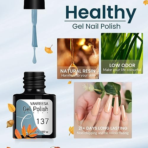 - Healthy and Long-Lasting: VANREESA gel nail polish made of natural resin and toxin free ingredient, which is safe, low odor and no harm to skin. This gel polish is brightly pigmented, good tenacity and chip-resistant. Under a proper application, it will keep high glossy shine and long-lasting for 21+ days.