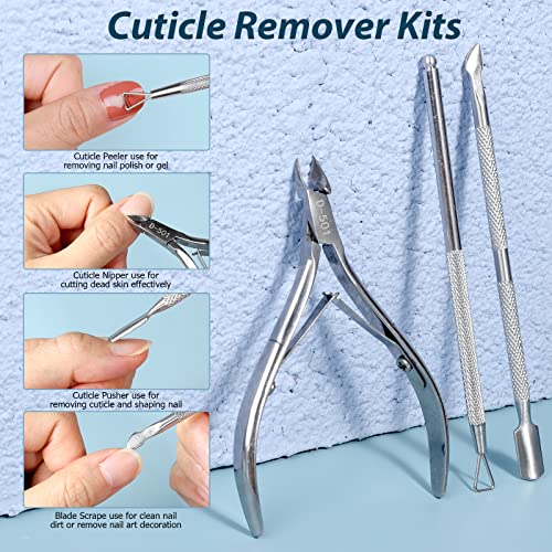 - Premium Quality Cuticle Remover Tool: The most popular cuticle remover kit include cuticle cutter nipper and cuticle pusher- cuticle nipper come with sharp blade to help remove dead skin, easy to hold and control; cuticle pusher are double side, you can use spoon side to push your cuticle and shape, and use blade scrape side to clean nail dirt or remove nail art decoration
