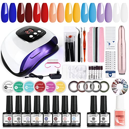 - 【WHAT YOU GET】- SPTHTHHPY Upgraded Gel Nail Polish Kit with 48W Nail Lamp, 8 X gel nail polish (8ml), 6 X Gel Nail UV (8ml), 1 X electric nail drill set, 1 X gel base, 1X top coat, 12 X Professional Manicure Tools. All in one home gel polish nail kit.