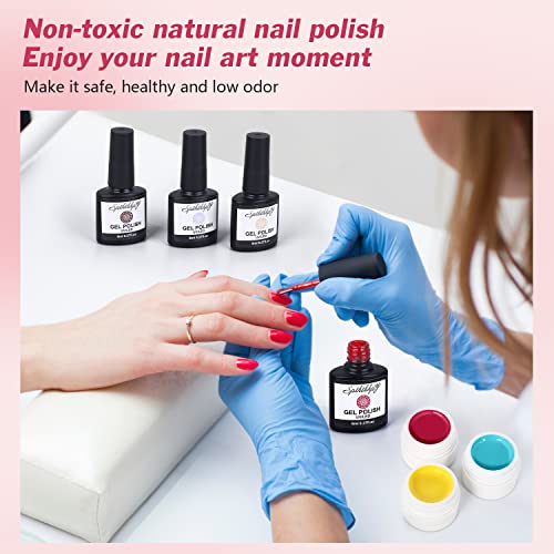- 【HEALTHY & CERTIFIED CRUELTY-FREE 】- SPTHTHHPY 8 colors Soak-off gel polish set (8ml) meet safety requirements and features the FDA Certification, has a low odor and high gloss, no harsh ingredients or adhesives. Long-lasting but easy to remove. There are endless nail art possibilities in this kit. Truly get the DIY fun. Gel Nail Glue UV (8ml) also requires a lamp for drying.