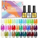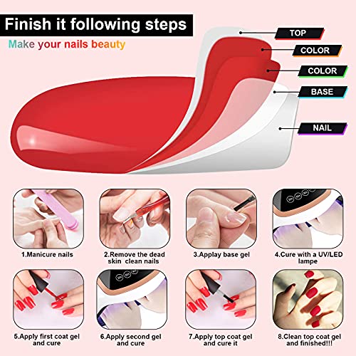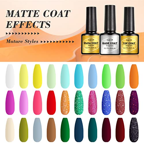 - Soak Off Gel Nail Polish: 2022 upgraded version, the nail gel polish kit added 7 glitter colors to better meet the needs of each artistic nail, which contains 30 different styles of gel polish, such as white, glitter black, red, nude, lavender, turquoise, yellow, glitter purple, blue, pastel, wine, green, brown etc. Need base coat and top coat, and need to be cured by nail lamp, average for 60-90 sec.