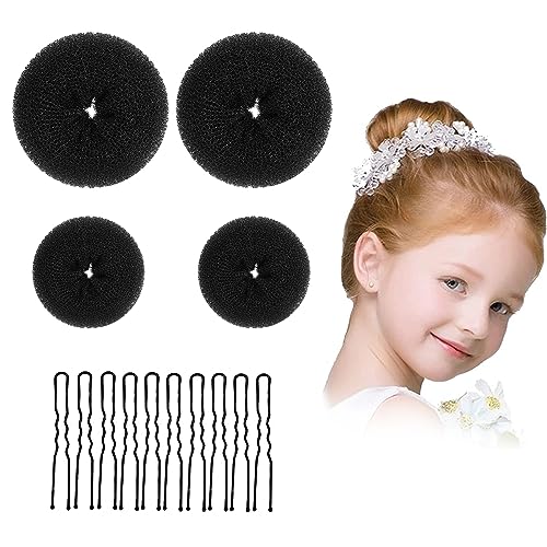 Home Hair Care Hair Donut Blonde – 4Pcs Donut Bun Makers Set with 10Pcs Hair Pins – Stylish Blonde Doughnut Bun Hair Accessories for Girls and Kids