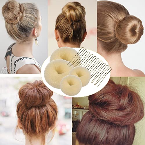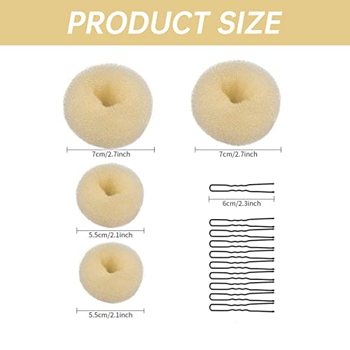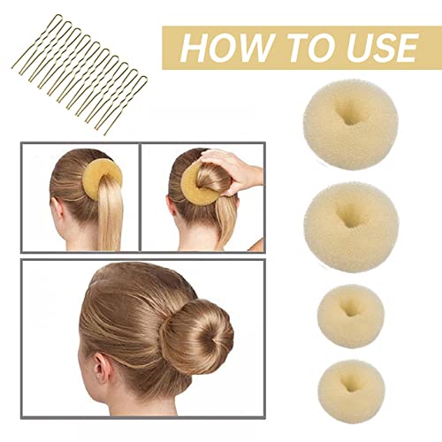 Hair Donut Blonde | Donut for Hair | 4Pcs Donut Bun Makers Hair Donut Bun Ring Style Bun Maker Set with 10Pcs Hair Pins Blonde | Blonde Doughnut