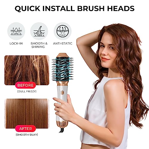 - 【2023 New Update Hair Dryer Brush】The hot air brush dryer for women comes with 6 interchangeable brush attachments that make hairdryer, straightening, curling, volumizing, and scalp massaging a breeze. When coupled with stylish hairdryer brush, this blow dryer brush provides the perfect for creating different hairstyles for different hair lengths. The exquisite packaging also allows you to use it as a gift for friends, family, or anyone else you love.