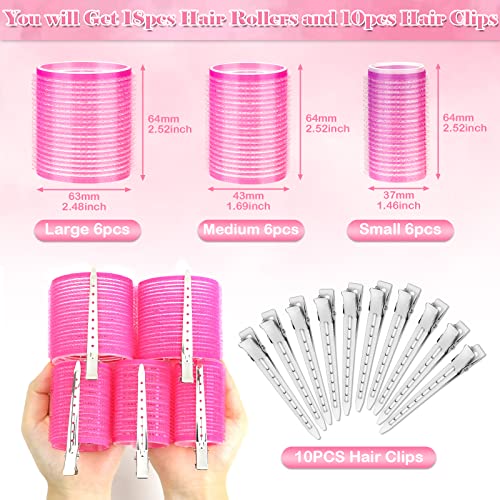- 💖【What Will You Get】The hair roller set includes 18pcs hair rollers and 10pcs sturdy duckbill clips. Jumbo hair rollers include 3 different sizes, each size includes 6pcs hair rollers, diameters of approximately 63 mm/2.48 inches, 43 mm /1.69 inches, and 37mm/1.45 inches. The duckbill clip length is 8.9 cm / 3.5 inches. Self-grip rollers can create beautiful hairstyles for all types of hair and bring more charm to you.