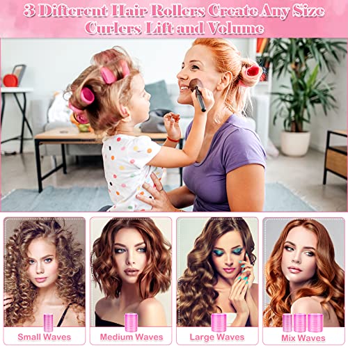 - 💖【Multifunction】The hair curlers rollers tools include 3 different sizes that can be applied for many kinds of different size hair curly waves. Hair rollers with clips suitable for short medium long hair, suitable for all hairstyles and all ages. Portable and lightweight, not only allows you to easily have a new look at home every day but also can be used for travel, business trips, beautiful places, etc. Jumbo hair rollers are also perfect as a gift for your family, friends, or lover.