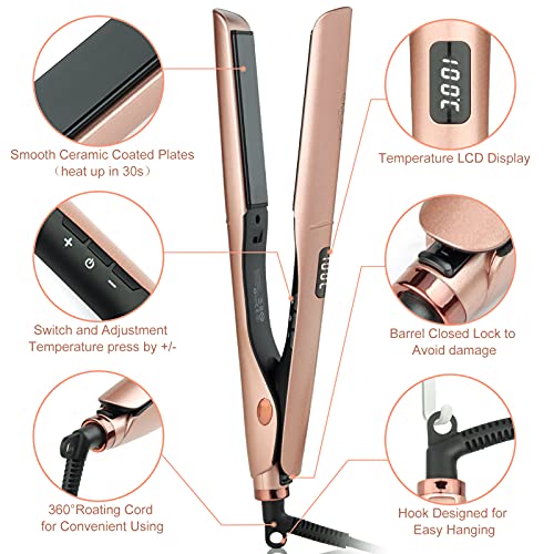 Hair Straighteners for Women 2 in 1 Hair Straightener and Curler Ceramic Plates Flat Iron with Adjustable Temperature LCD Display Straightening S