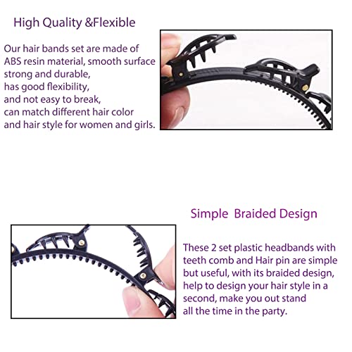 - 【Teeth Comb With Braided Design Simple but Useful】These 2 set plastic headbands with teeth comb and Hair pin are simple but useful, with its braided design, help to design your hair style in a second, make you out stand all the time in the party.