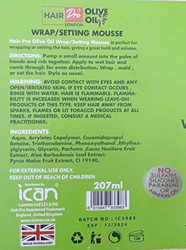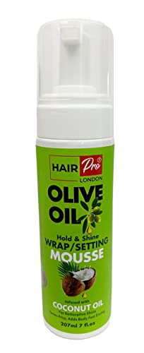 HAIRPRO OLIVE OIL HOLD & SHINE WRAP SET MOUSSE INFUSED WITH COCONUT OIL 207ml