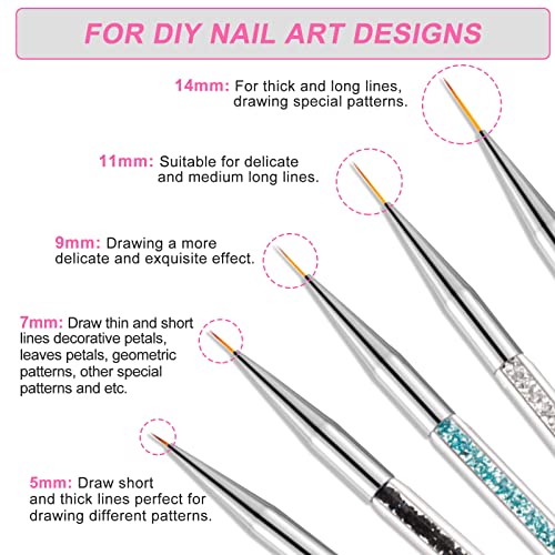 - 【Package Include】5 pcs nail line brush pens, 5 different sizes of nail pens: 5.67/5.71/5.79/5.91/5.98 inches. A set meets all nail art design requirements and is very suitable for drawing on nail tips different patterns.