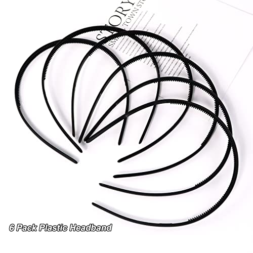 Hanyousheng 6 Pack Plastic Headband, 8mm Teeth Comb Headband, Black Non-slip Hair Hoop, Unisex Sport Fashion Hair Band Accessories for Women and