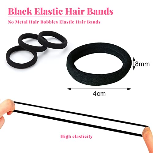 - Elastic Hair Band Size: Diameter about 4 cm, wide: 0.8cm, black hair bands can be stretched up to 18 cm, which is of great elasticity and good for long and thick hair, seamless high elastic material can keep the hair firmly and not easy to lose up, break or stretch out.