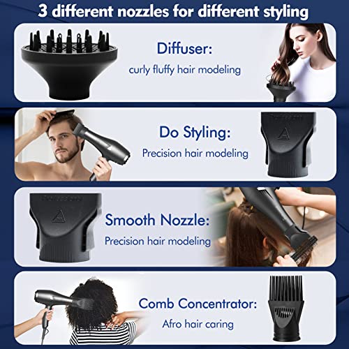 HappyGoo,Black Professional Hair Dryer 2400W AC Motor Fast Drying Salon Ionic Hairdryer with 2 Speed, 3 Heat Setting, Cool Button, with Diffuser, HappyGoo,Black Professional Hair Dryer 2400W AC Motor Fast Drying Salon Ionic Hairdryer with 2 Speed, 3 Heat Setting, Cool Button, with Diffuser,