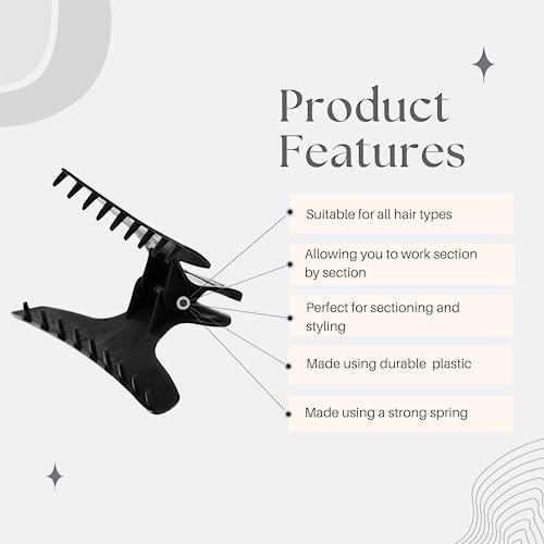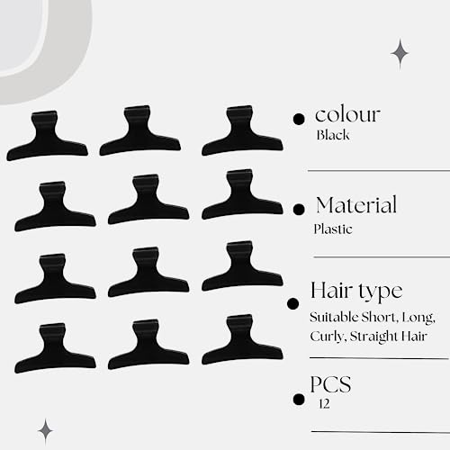 • WHATS INCLUDED: This package includes 12 x black butterfly clips, perfect for sectioning and styling both long hair and short hair. 25.6 x 14.8 x 3.4 cm
