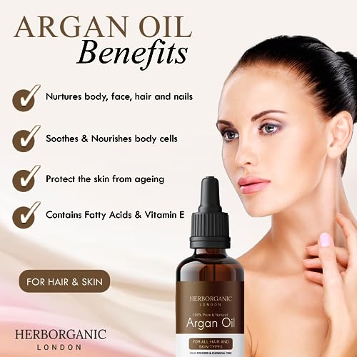 - ✅ For All Skin Types - A pure formula, free from any additives or chemicals, HerbOrganic argan oil is perfectly suitable for all skin types. Tested and approved by our professionals, it will work wonders for your dry, irritated and oily skin, leaving you with nothing but smooth, glowing, and healthy skin, hair, and nails.