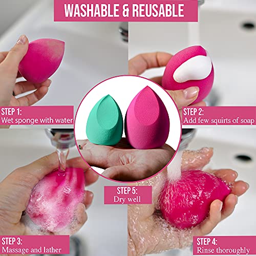Home Make Up HOOBE Makeup Sponge for Blending Liquid Foundation, Cream & Powder – Easy to Clean, Super Soft & Non Latex Beauty Blender Concealer Applicator (p
