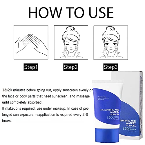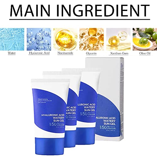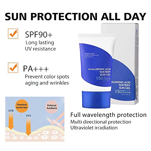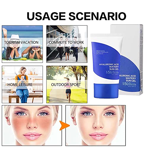 - "Hyaluronic acid natural sunscreen SPF50+Pa+++ protects against UVA and UVB rays, preventing skin damage and premature aging" - With strong UV protection, our sunscreen gel shields your skin from harmful rays, keeping it safe from damage and aging caused by sunlight.