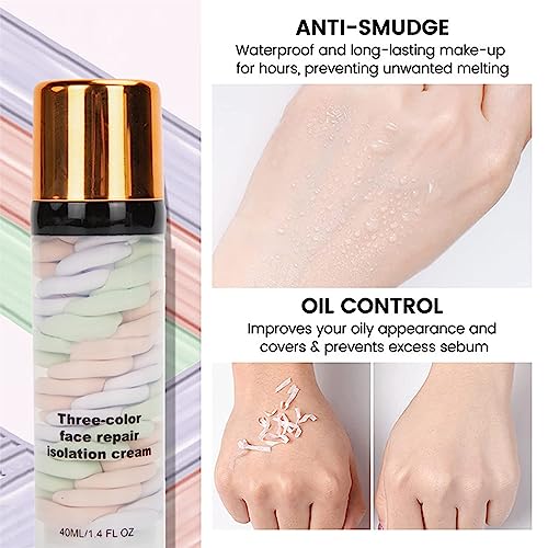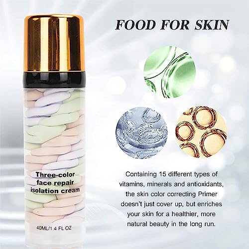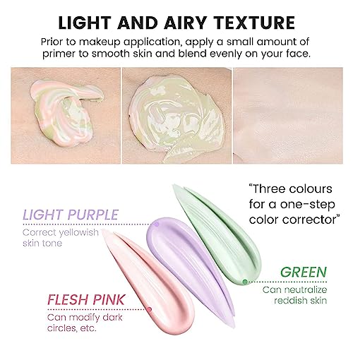- 【3 Colour - Correcting Pigments】This revolutionary primer contains 3 tones: green concealer to neutralise redness and hide blemishes, light purple to correct yellowish skin tone, flesh pink can modify dark circles, moisturiser face women brighten and illuminate, while reducing the appearance of sun spots, carpe.