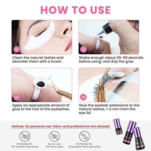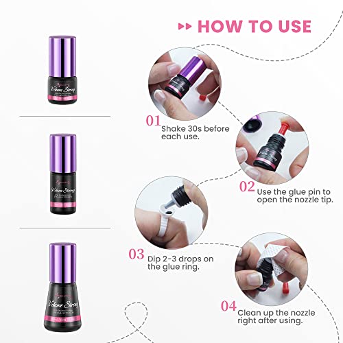 - [Fast Drying Glue] - Volume Strong glue has the fast drying time of 1-2 seconds.It also has a long retention time. Recommend to expert.