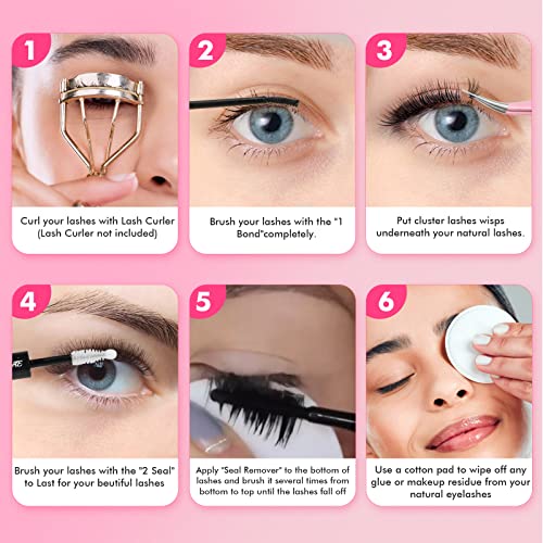 - 【Eyelash Extension Remover】- This natural eyelash set comes with the Seal Remover, you can apply the eyelash remover head on the root of an individual lash slowly to remove the false lashes off and didn't damage the natural eyelashes. Kindly Note: If the cluster lashes are still completed after removing them and you can store these individual lash clusters and use them for next time.