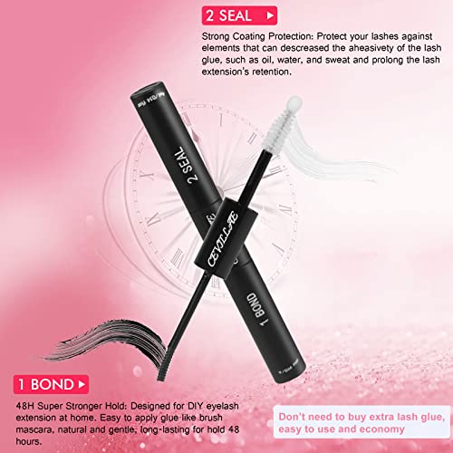 - 【Double-Ends Individual Lash Glue, Easy to Use】- This eyelash glue is consist of two parts,"1 Bond" and "2 Seal", The "1 bond" with strong black eyelash glue to make the individual lashes firmly adhere to your lash. The "2 Seal"is transparent seal glue to protect your lashes against water and sweat so that prolong the lash extension’s retention for 48hours,this eyelash extension glue with a brush helps you DIY eyelash extension grafting at home easily,operate it more simple.