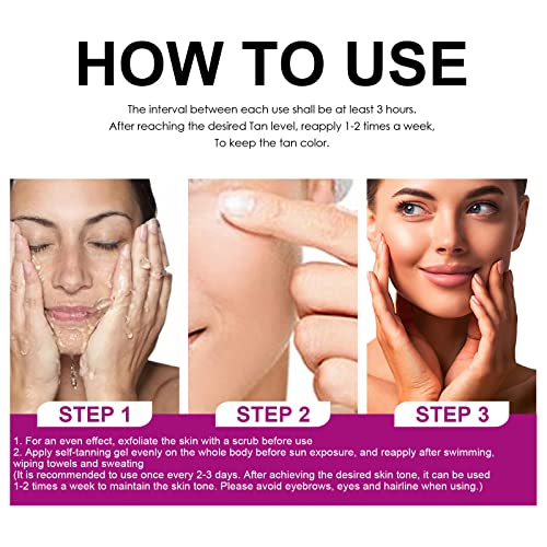 - 【Easy to Use】 You only need to apply the tanning cream on your skin, massage it in order to absorb it, and then bathe in the sun to enjoy a natural bronze tan! (Tip: It is recommended to use with your regular sunscreen to ensure proper sun protection. Avoid exposure to the midday sun.)