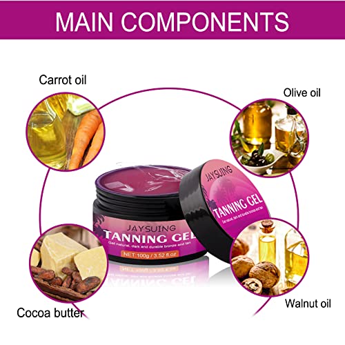 - 【Natural Botanical Ingredients】This tanning cream is everything your skin needs, namely the perfect bronzer - 100% natural carrot oil to tan and enhance the skin, extra virgin olive oil to enhance the tan and cocoa butter to present radiation and replenish the skin.