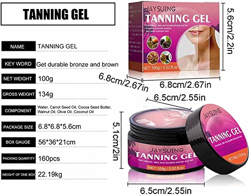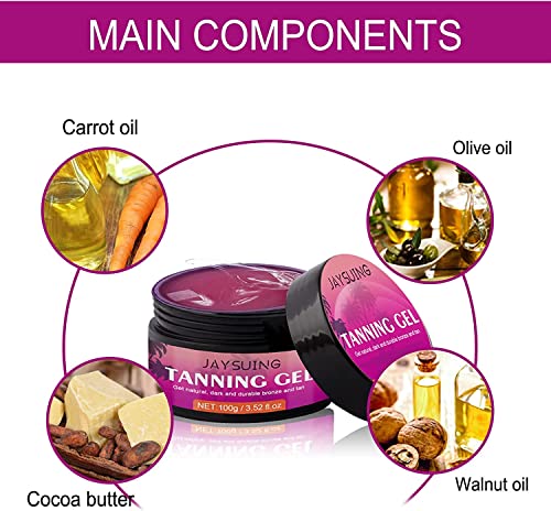 - 【Natural Botanical Ingredients】:This tanning cream is everything your skin needs, namely the perfect bronzer - 100% natural carrot oil to tan and enhance the skin, extra virgin olive oil to enhance the tan and cocoa butter to present radiation and replenish the skin.