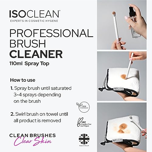 ISOCLEAN Makeup Brush Cleaner Liquid Spray Top Solution - Vegan, Cruelty-Free, Fast Drying, Easy to Use - Works in 60 seconds (110ml) ISOCLEAN Makeup Brush Cleaner Liquid Spray Top Solution - Vegan, Cruelty-Free, Fast Drying, Easy to Use - Works in 60 seconds (110ml)