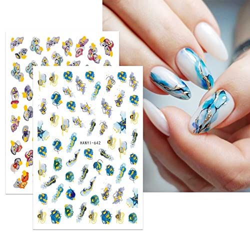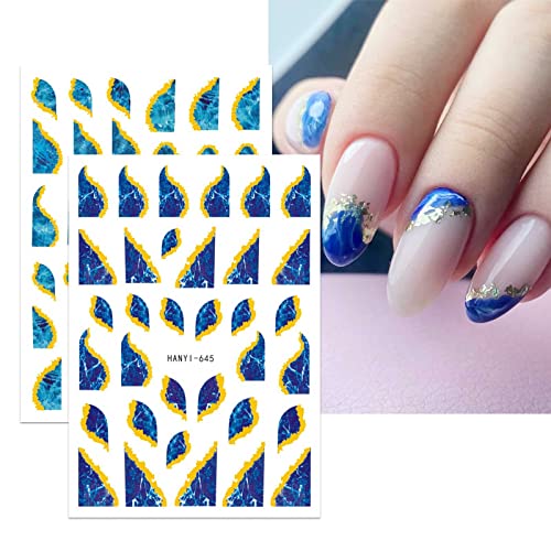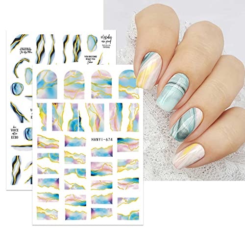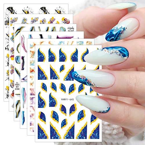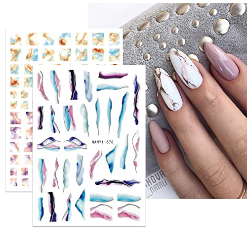 Home Nail Care JMEOWIO 10 Sheets Marble French Tip Nail Art Stickers Decals Self-Adhesive Colorful Marble Line Nail Supplies Nail Art Design Decoration Accessor