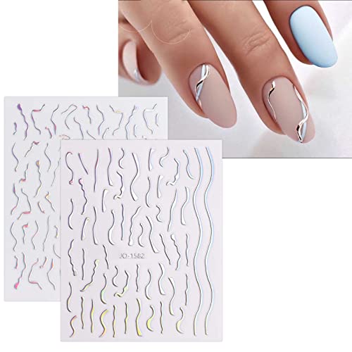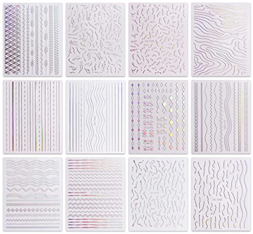 JMEOWIO 12 Sheets Aurora Nail Art Stickers Decals Self-Adhesive Holographic Nail Supplies Nail Art Design Decoration Accessories