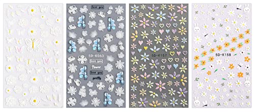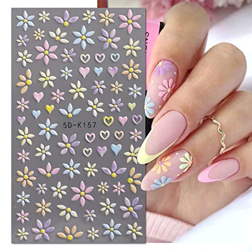 JMEOWIO 3D Embossed Spring Flower Nail Art Stickers Decals Self-Adhesive 5D Floral Colorful Summer Nail Supplies Nail Art Design Decoration Acces