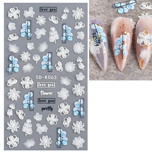 Home Nail Care JMEOWIO 3D Embossed Spring Flower Nail Art Stickers Decals Self-Adhesive 5D Floral Colorful Summer Nail Supplies Nail Art Design Decoration Acces