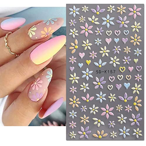 JMEOWIO 3D Embossed Spring Flower Nail Art Stickers Decals Self-Adhesive 5D Floral Colorful Summer Nail Supplies Nail Art Design Decoration Acces JMEOWIO 3D Embossed Spring Flower Nail Art Stickers Decals Self-Adhesive 5D Floral Colorful Summer Nail Supplies Nail Art Design Decoration Acces