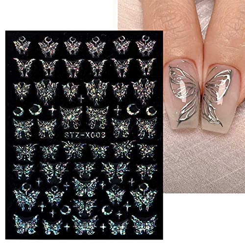 Home Nail Care JMEOWIO 6 Sheets Aurora Holographic Butterfly Nail Art Stickers Decals Self-Adhesive Spring Summer Nail Supplies Nail Art Design Decoration Acces
