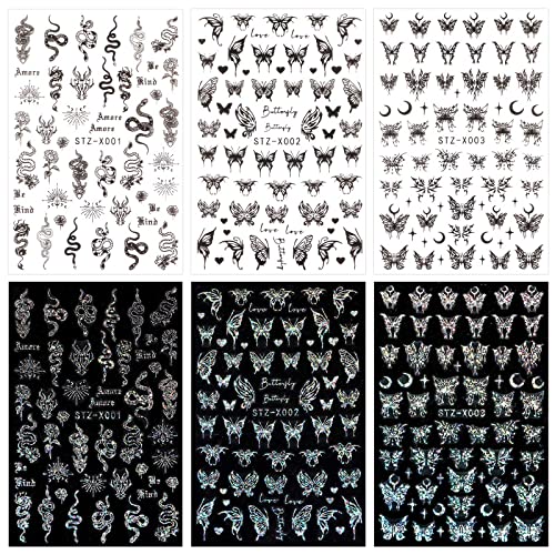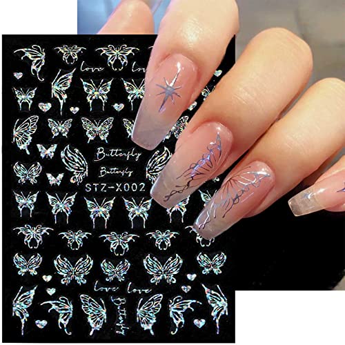 JMEOWIO 6 Sheets Aurora Holographic Butterfly Nail Art Stickers Decals Self-Adhesive Spring Summer Nail Supplies Nail Art Design Decoration Acces JMEOWIO 6 Sheets Aurora Holographic Butterfly Nail Art Stickers Decals Self-Adhesive Spring Summer Nail Supplies Nail Art Design Decoration Acces