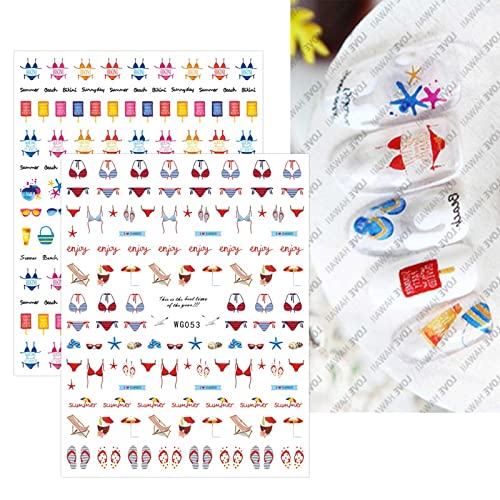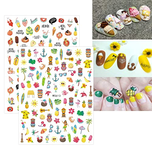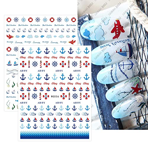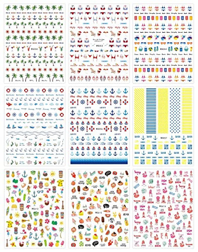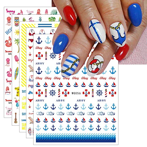 Home Nail Care JMEOWIO 9 Sheets Summer Ocean Nail Art Stickers Decals Self-Adhesive Nautical Boat Anchor Nail Supplies Nail Art Design Decoration Accessories
