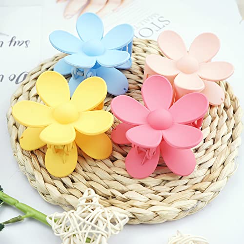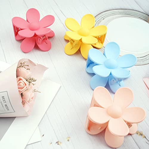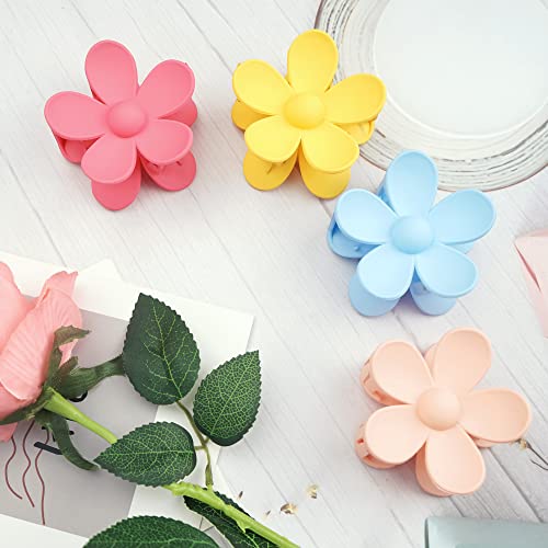 JOYOYO 4 Pcs Flower Hair Clips Hair Claw Clips for Women and Girls Medium Size Hair Claws for Thin Hair, Lightweight Plastic Clips Flower Clips 3