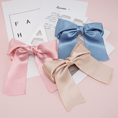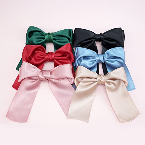 JOYOYO 6 Pcs Large Hair Bows for Women Girls 5.5 Inch Silky Satin Ribbon Bows Craft Bows Big Hair Bow Clips for Lolita Party Girl with French Bar