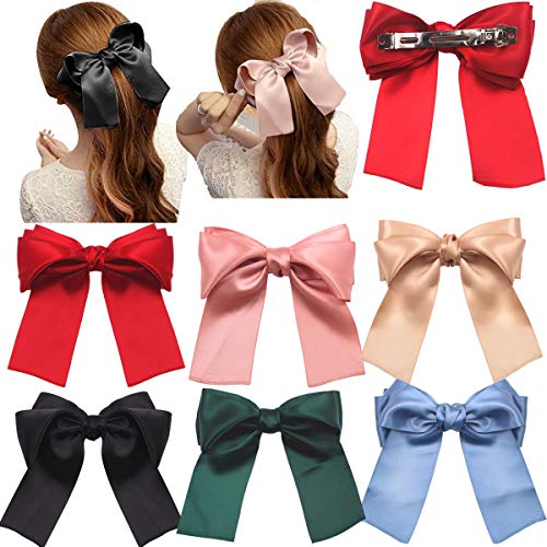JOYOYO 6 Pcs Large Hair Bows for Women Girls 5.5 Inch Silky Satin Ribbon Bows Craft Bows Big Hair Bow Clips for Lolita Party Girl with French Bar JOYOYO 6 Pcs Large Hair Bows for Women Girls 5.5 Inch Silky Satin Ribbon Bows Craft Bows Big Hair Bow Clips for Lolita Party Girl with French Bar