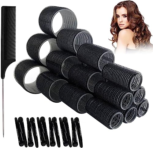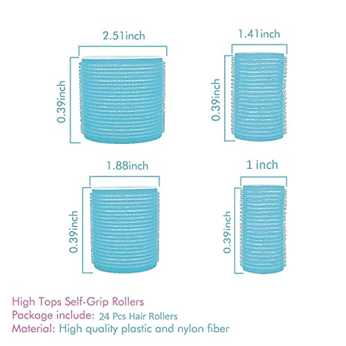 Jumbo Hair Rollers Set Self Grip Curlers For Long Hair No Heat Heatless Hair Rollers With Clips & Comb 24 Packs (Blue 24Pcs)