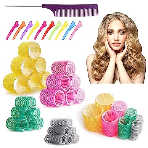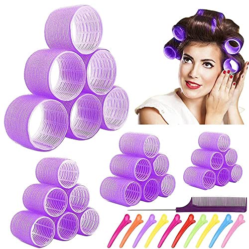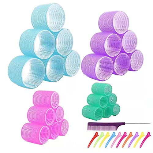 Jumbo Hair Rollers Set Self Grip Curlers For Long Hair No Heat Heatless Hair Rollers With Clips & Comb 24 Packs (Blue 24Pcs) Jumbo Hair Rollers Set Self Grip Curlers For Long Hair No Heat Heatless Hair Rollers With Clips & Comb 24 Packs (Blue 24Pcs)