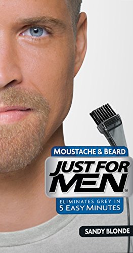- New look, same great results. Just For Men Mustache & Beard, Blonde, M10, is beard colouring that makes getting rid of grey facial hair easy. Unlike other dyes, this beard colour is formulated specifically for coarser facial hair. Eliminates grey for a thicker and fuller look.