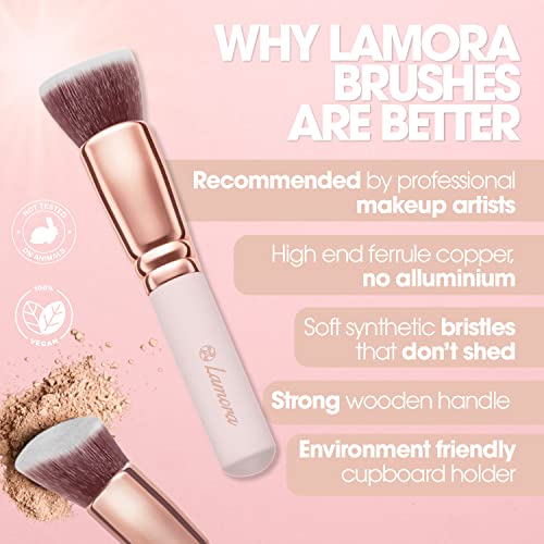 - ✓ Forget Mac, Sigma and etc. there is a new standard of quality in the World of Beauty! I LOVE my Lamora kabuki brush set. I have been using them for approximately three weeks. I am not sure of what I did prior to this purchase. LADIES ,it's a highly qualitative investment, especially if your existence and viability are contingent on a budget. THE BRUSHES DOES NOT SHED, even after washing them. It's often said that you get what you pay for. But in this case, YOU GET SO MUCH MORE!