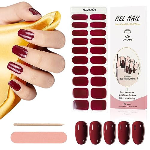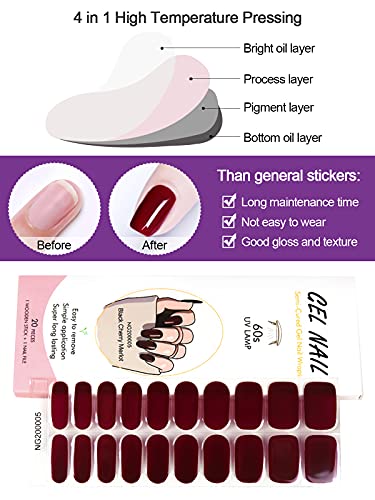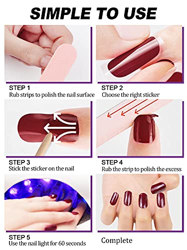 - Package contents: 20pc wine red gel nail polish strips stickers with 1 nail file, 1 nail stick, which make your nail art decoration more convenient.