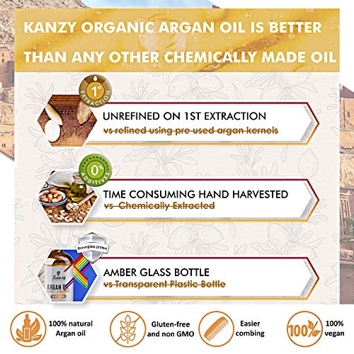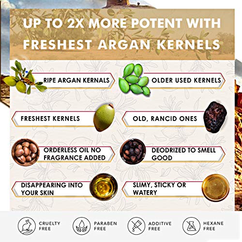 - Top quality: Pure argan oil is the highest quality oil from Morocco, we have many studies carried out, the moroccan argan oil is the perfect solution for hair problems enriched with vitamin E, powerful natural antioxidant, perfect companion for dry and damaged hair