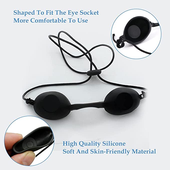 - Sunbed goggles: The laser protection eye mask is made of robust, durable, lightweight and robust silicone, which is resistant to UV rays and high temperatures. You don't have to worry about the goggles burning the skin.
