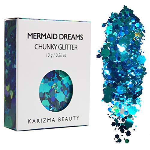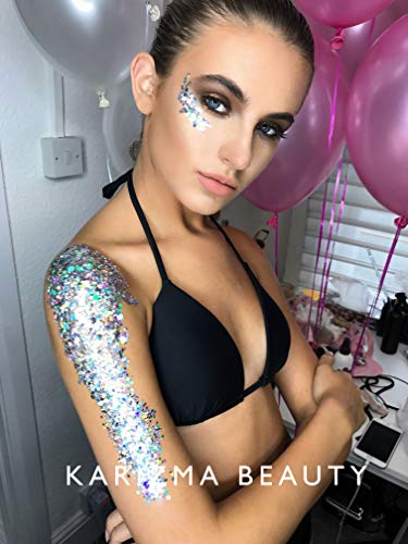 - Safe, Vegan Face and Body Makeup: Craft fine glitter is made with glass and a no-no for sweaty nights out dancing. But KARIZMA Chunky Glitter is made from cosmetic plastic glitter flakes and safe for skin and kids. Our cosmetic grade glitter is available in 10g, 30g and multipack festival glitter.